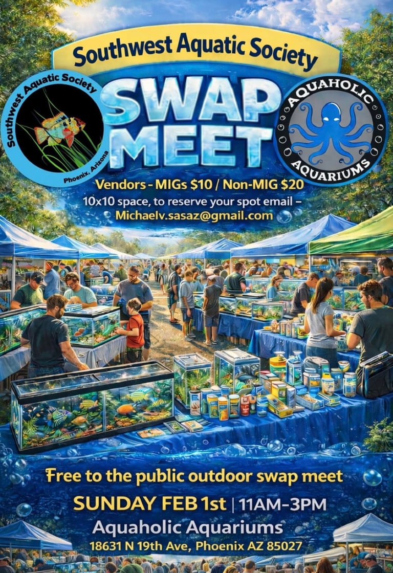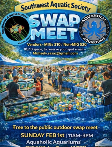 Southwest Aquatic Society is an aquarium club based in the Phoenix, Arizona metro area. We are passionate about the aquarium hobby and provide a platform for enthusiasts to come together, learn, and exchange information. Whether you're a seasoned professional or just starting out, we invite you to join our community.