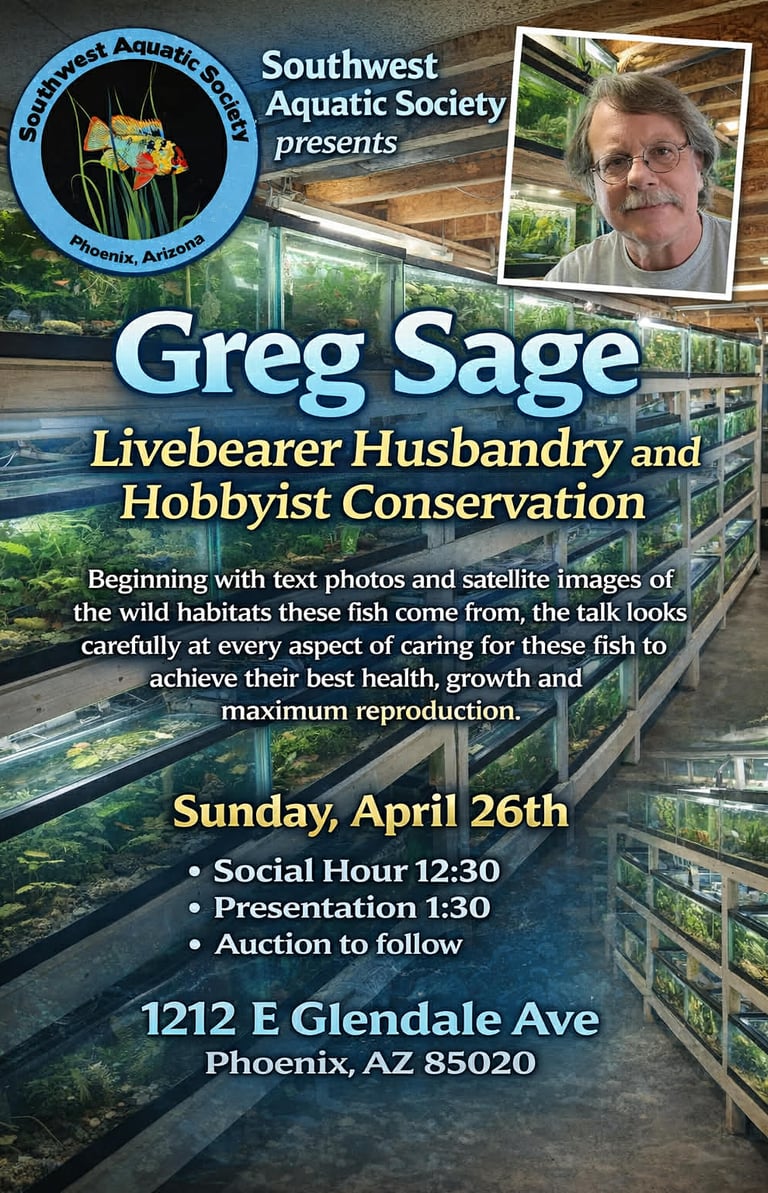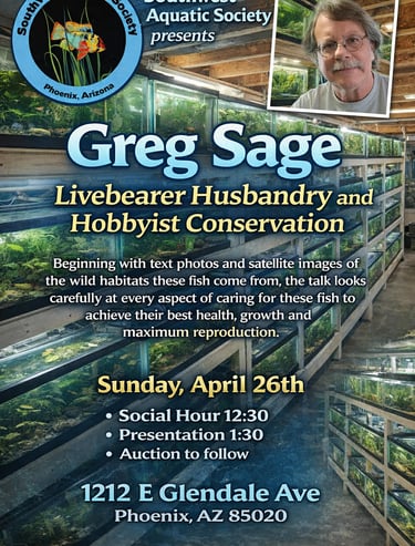 Southwest Aquatic Society is an aquarium club based in the Phoenix, Arizona metro area. We are passionate about the aquarium hobby and provide a platform for enthusiasts to come together, learn, and exchange information. Whether you're a seasoned professional or just starting out, we invite you to join our community.